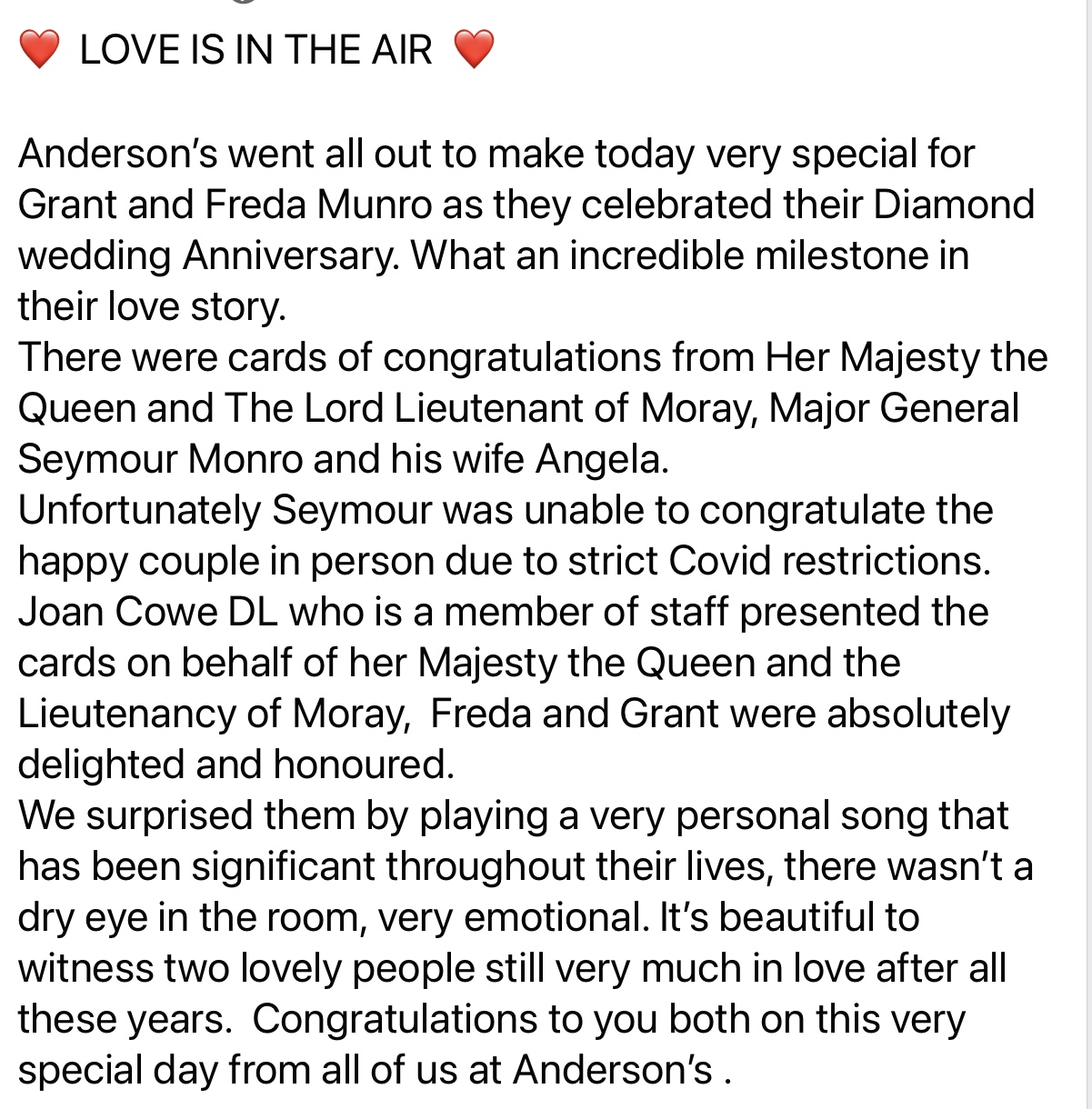 Diamond Wedding Celebrations at Andersons Care Home admin2021-04-05T21:10:35+00:00March 26th, 2021| Related Posts Lord Lieutenant pays his respects on ANZAC Day, 25 April Gallery Lord Lieutenant pays his respects on ANZAC Day, 25 April April Moray Citizenship Gallery April Moray Citizenship Multiple awards for Grampian Hospital Radio Gallery Multiple awards for Grampian Hospital Radio Moray Young Musician of the Year 2026 Gallery Moray Young Musician of the Year 2026 HRH The Duke of Gloucester visits Moray Gallery HRH The Duke of Gloucester visits Moray